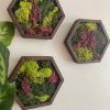 The trio includes three 6 ” by 5 ” wood frames carefully assembled with preserved reindeer moss with twine and hardware for hanging on each frame.